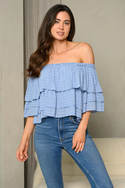 Tonal stripe off-shoulder multi-tiered loose-fit