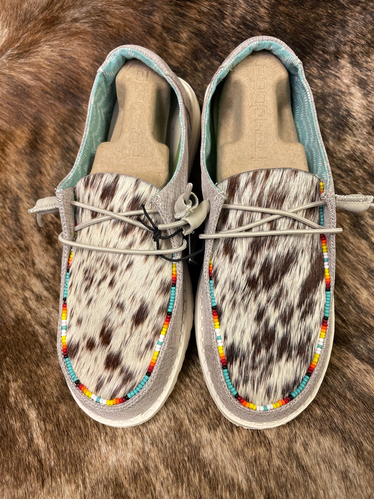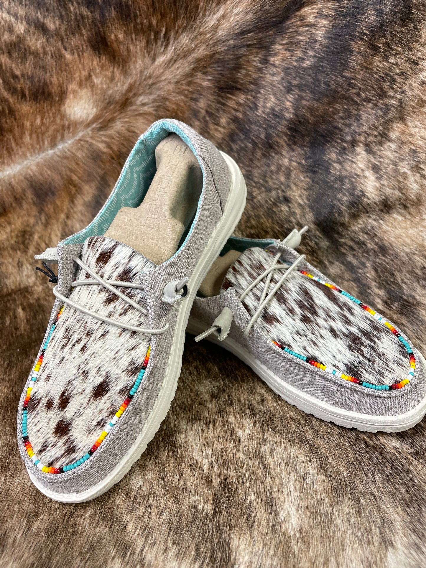 Genuine cowhide leather with beaded trim.