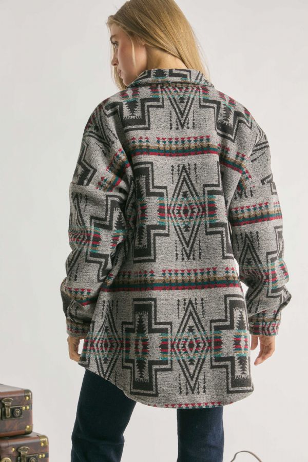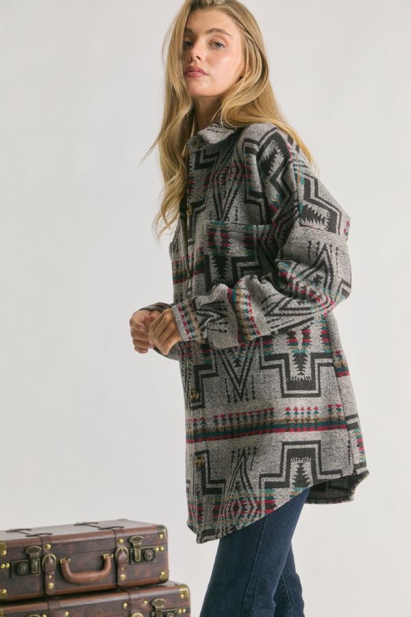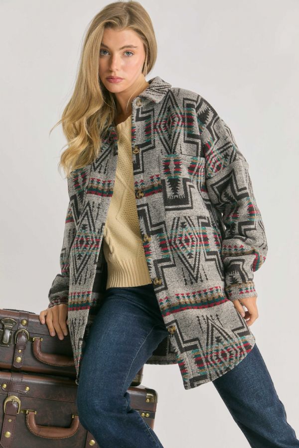 GEO AZTEC TRIBAL JACQUARD BUTTON FRONT SHIRTJACKET